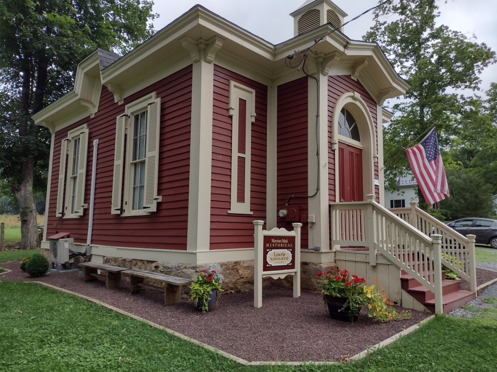 The Lowrie Schoolhouse was built in the 1860’s by the carpenter Balzer Rumberger as a private school for the Lowrie children of the Lowrie family. It has been a Warriors Mark landmark ever since the days when they, and the other children of the town crossed the street from the old Lowrie Mansion to learn the “three R’s”.